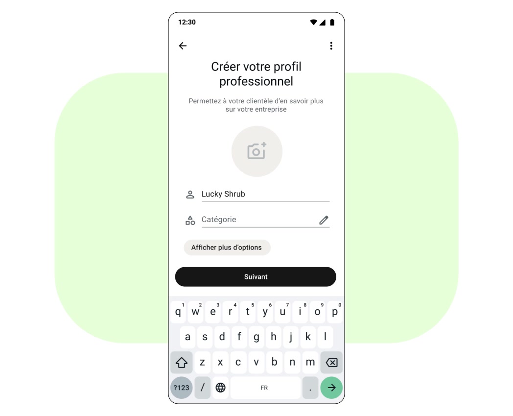 Pour créer votre profil WhatsApp Business, il suffit de renseigner le nom de votre entreprise, sa catégorie et de télécharger un logo ou une image de profil.
